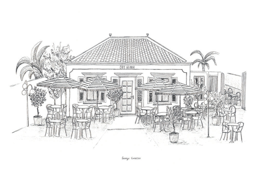 Not in the hustle and bustle of Willemstad. Not on the beach. And definitely not trying to be a beach club. Café George Curaçao is a world of its own. Intimate, sun-drenched, and effortlessly cool. Tucked away from the flash and noise, our jardin—a leafy, open-air courtyard—is a French escape with a Curaçao breeze.